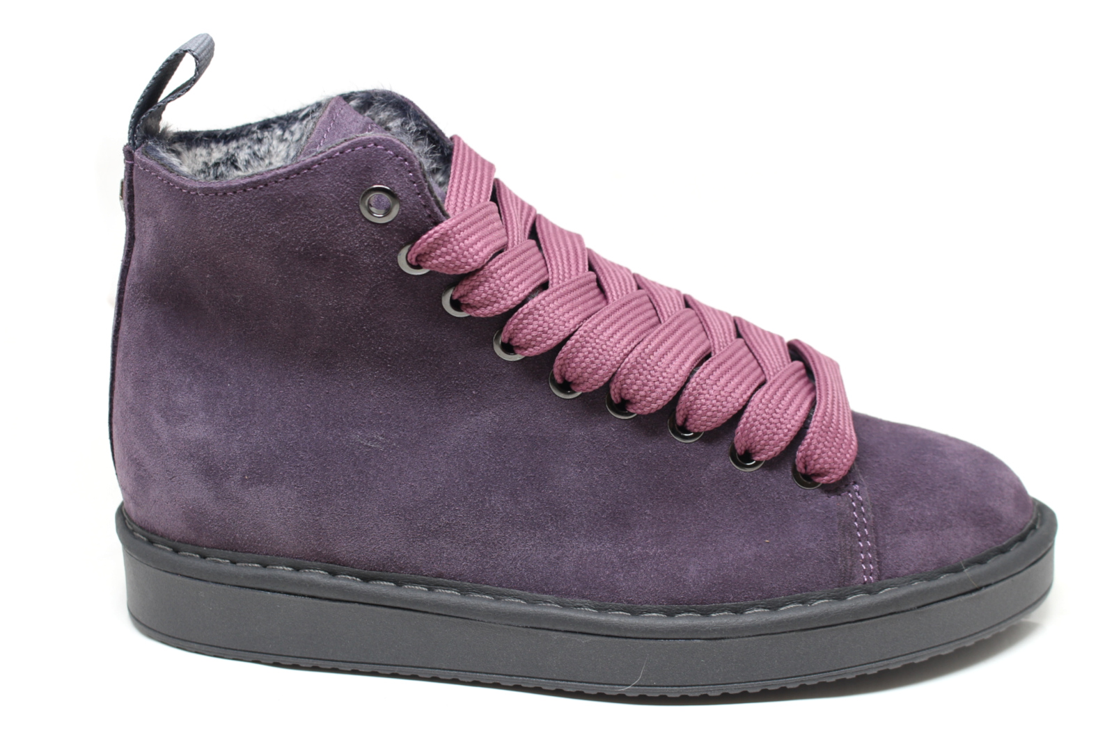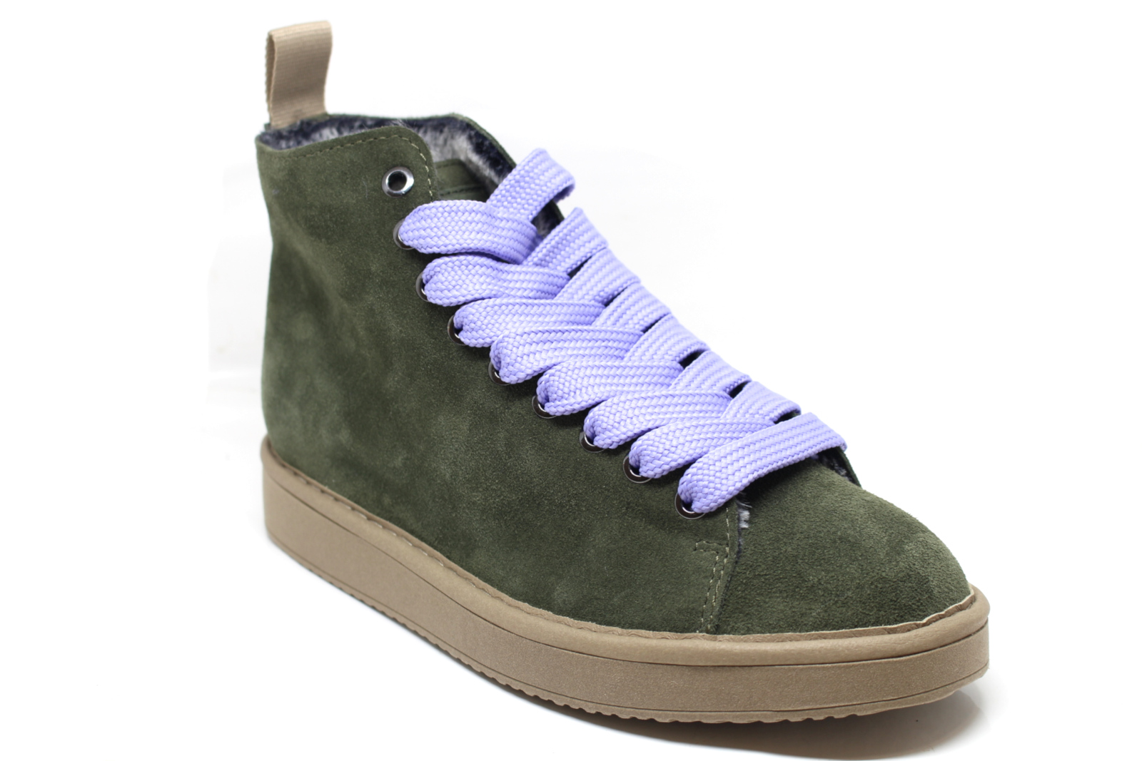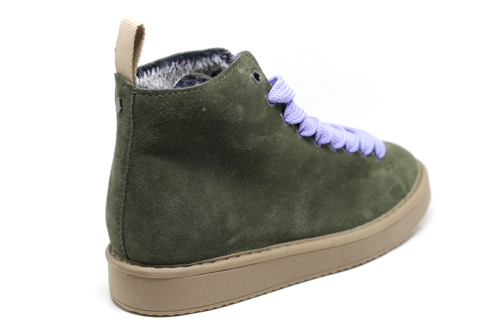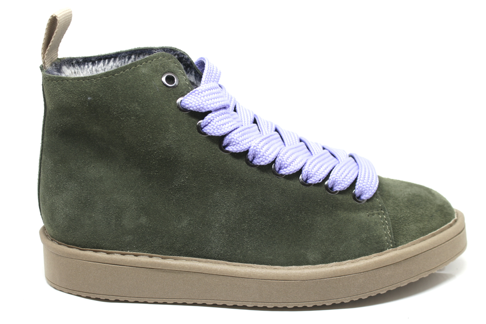Pànchic P01 Women’s ankle boot with suede upper, color laces and soft eco fur lining. 2.5 cm sole.