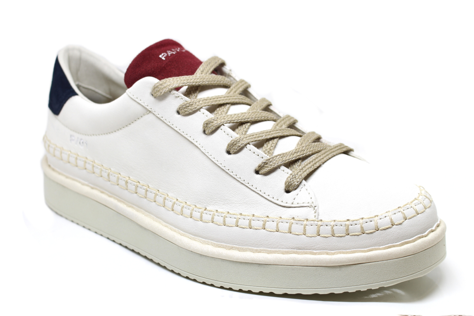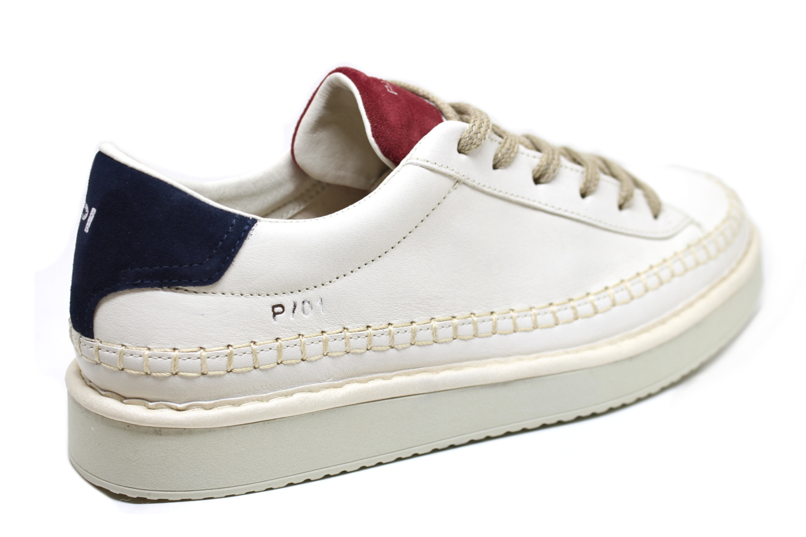 Scarpe allacciate uomo P01 con tomaia bianca di pelle con effetto stampato.
