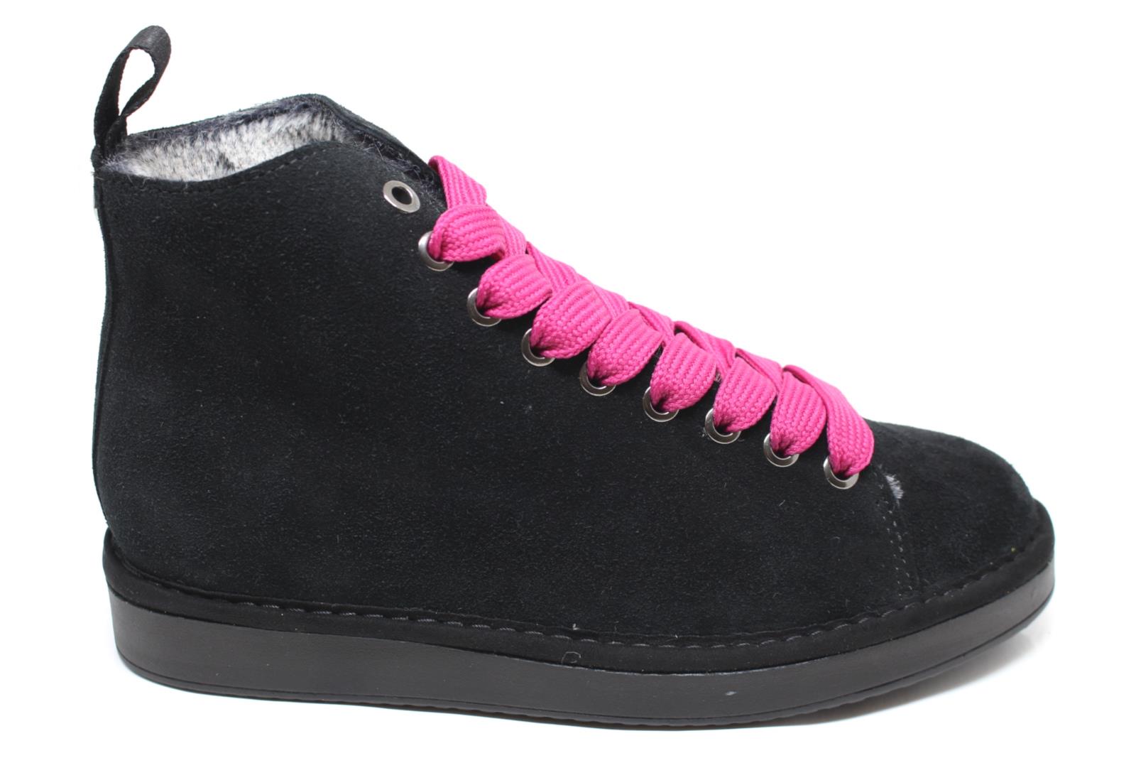Pànchic Polacchini donna P01w con tomaia in suede e lacci colorati a trama larga, interno in morbido eco fur.