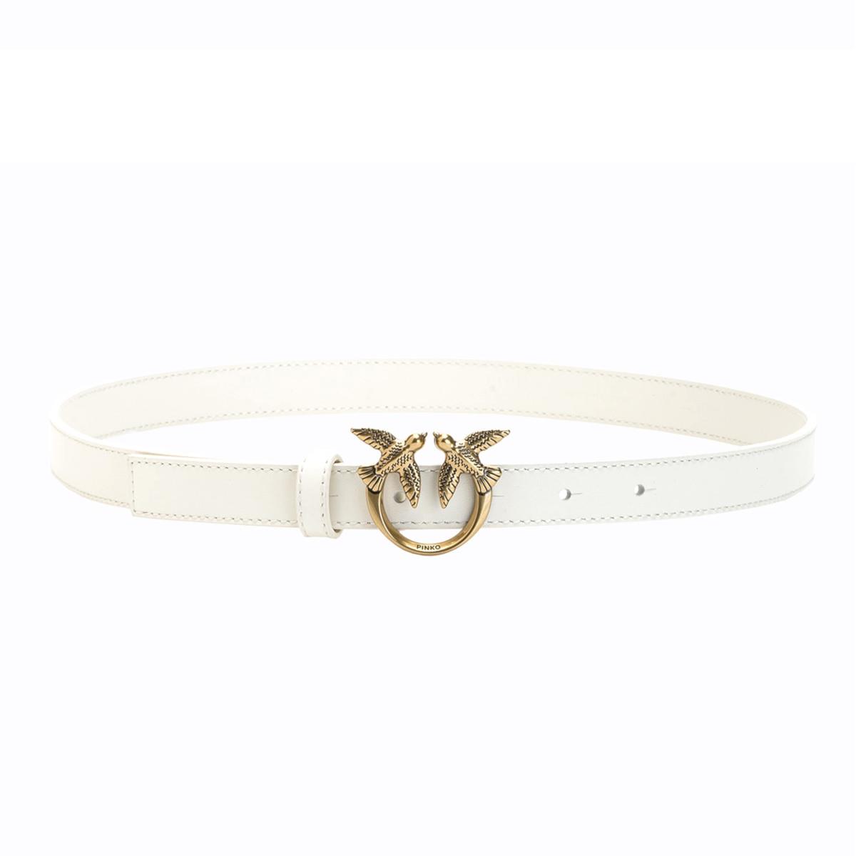PINKO Cintura Berry H3 in morbida pelle mano seta con fibbia Love Birds in metallo, galvanica antique gold.