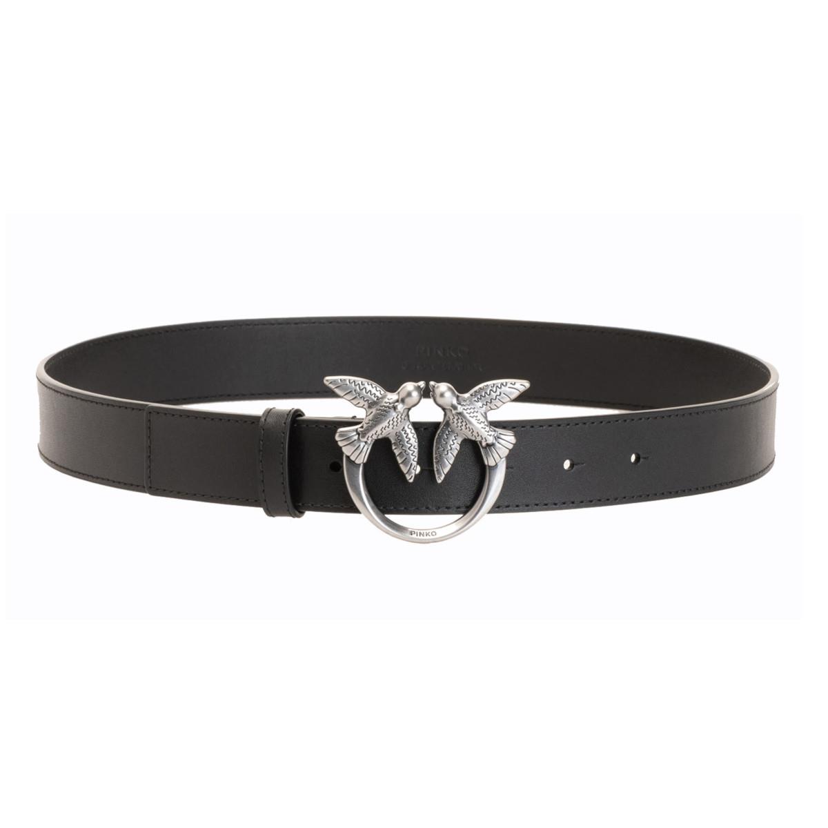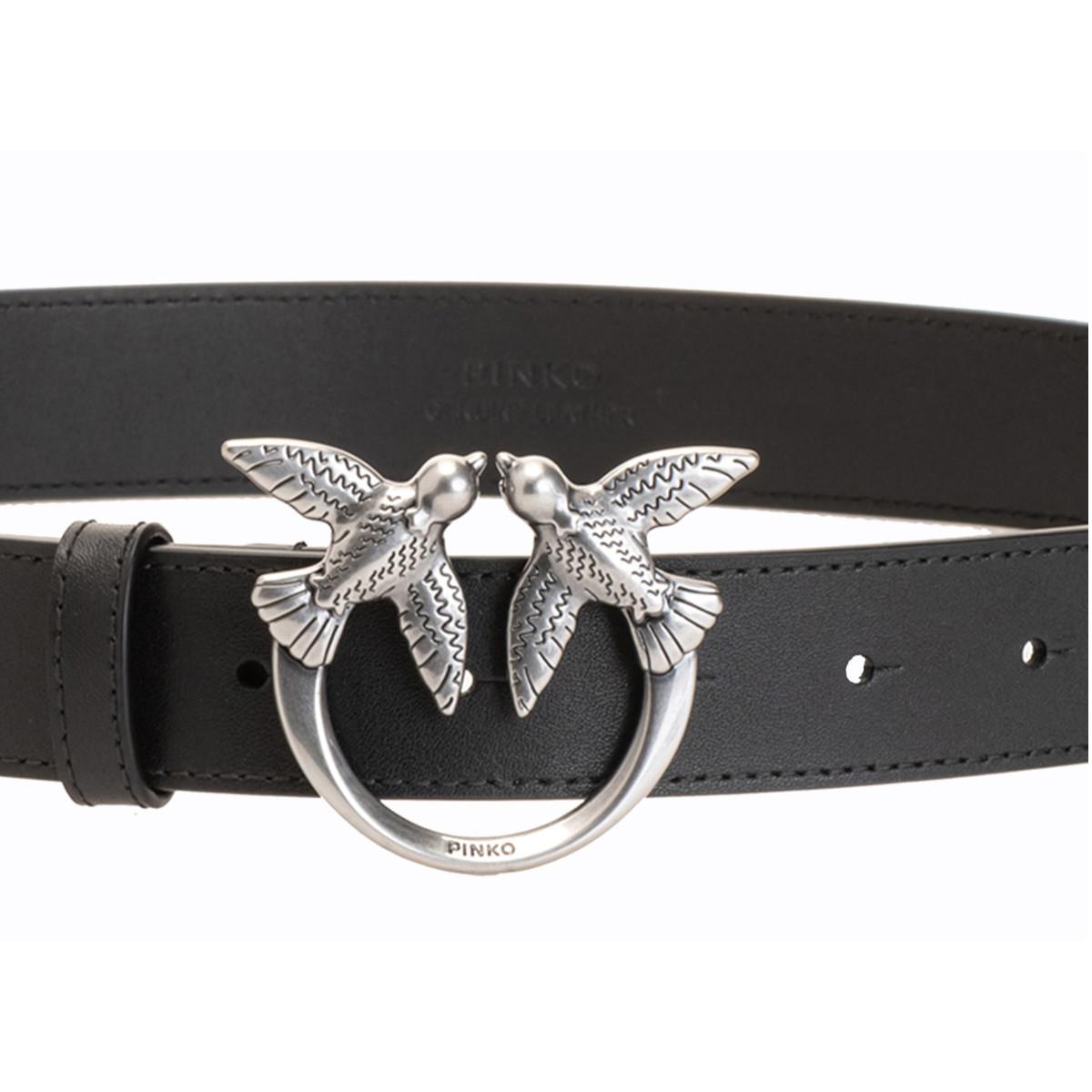PINKO Cintura Berry H3 in in morbida pelle mano seta con fibbia Love Birds in metallo, galvanica antique gold.