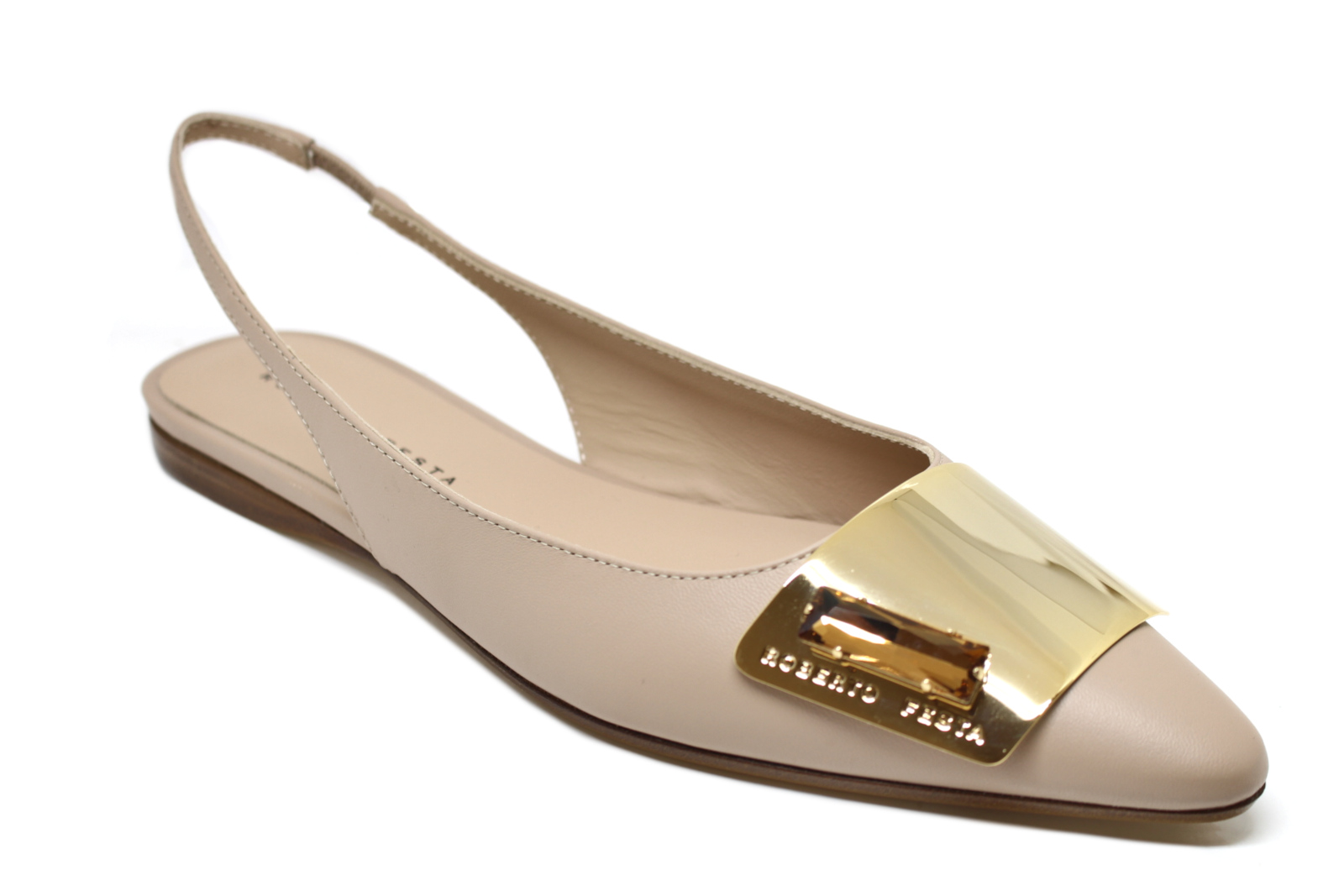 Creazione moderna ed elegante. La tomaia in softy è decorata con un accessorio la cui forma geometrica è innovativa e in tinta con la tomaia. Completata da un tacco comodo di 1,5 cm, è ideale per aggiungere un tocco di ricercatezza e colore a ogni look.