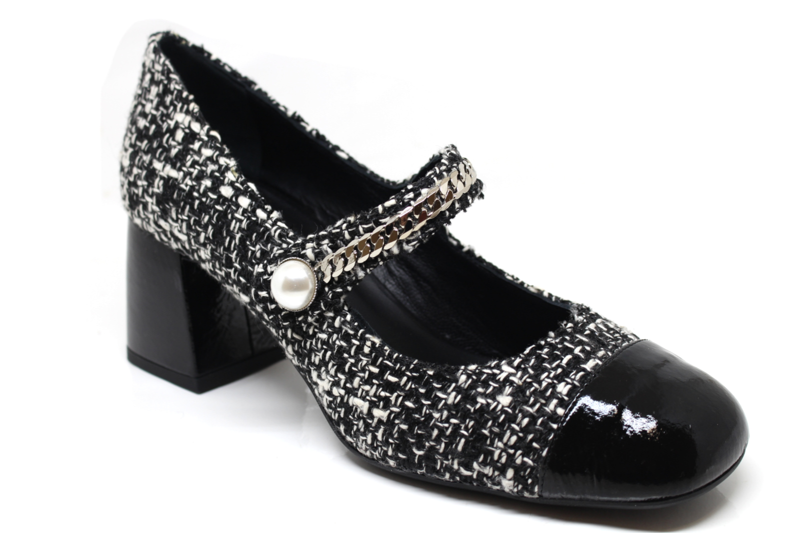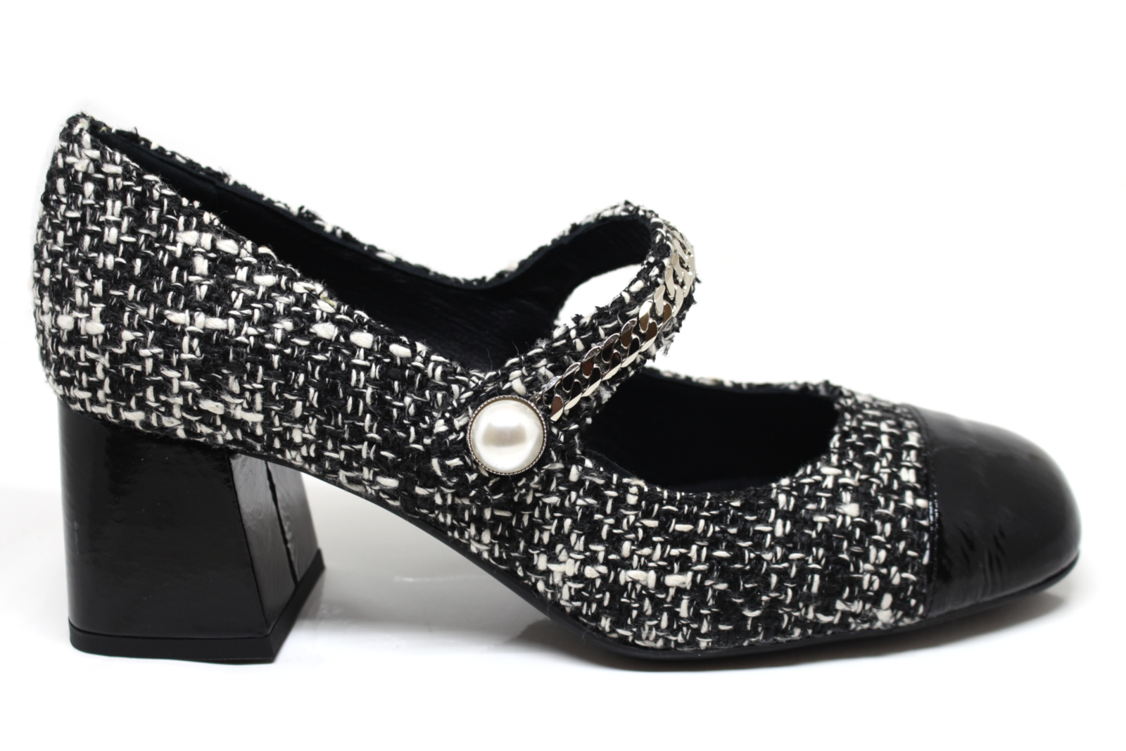 Mocassino Arwen in tweed e pelle, fondo gomma a carrarmato