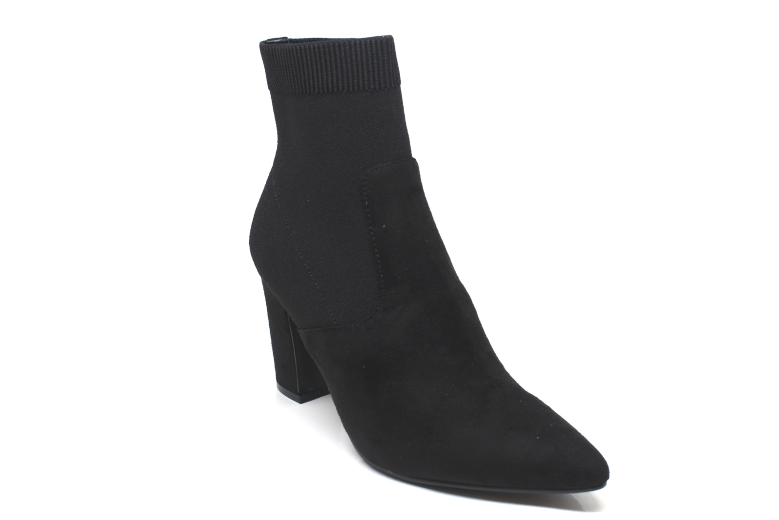 Tronchetto in ecosuede e tessuto elasticizzato, tacco cm 8,5 e suola in cuoio sintetico